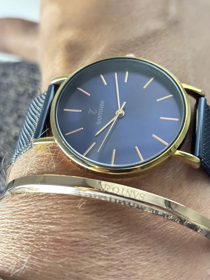 O modelo Essence Blue Gold 36mm se destaca com seu mostrador azul profundo e caixa dourada em aço inox. A combinação cria um visual elegante e marcante, perfeito para quem valoriza sofisticação com identidade.